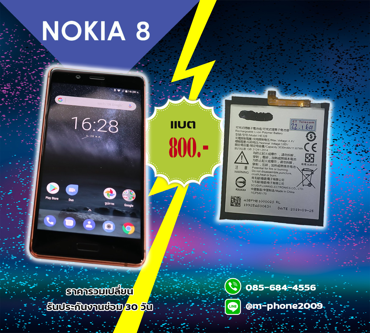 22 ม.ค. 2564 - งานเปลี่ยนแบต Nokia 8 ราคา 800 บาท