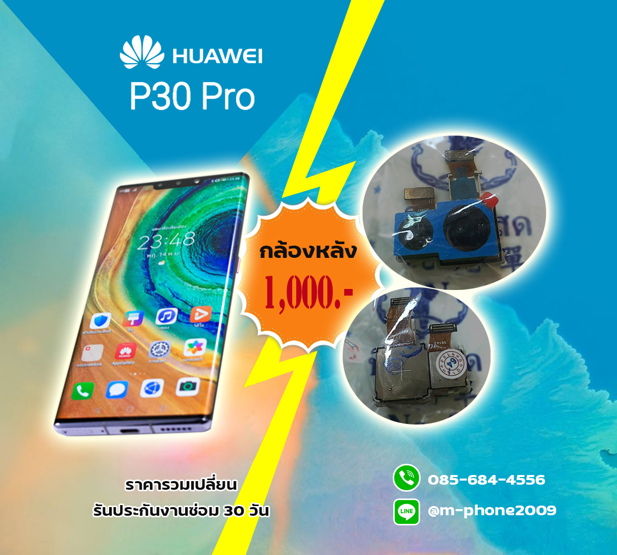 11 ก.พ. 2564 - งานเปลี่ยนกล้องหลัง Huawei P30 Pro ราคา 1,000 บาท