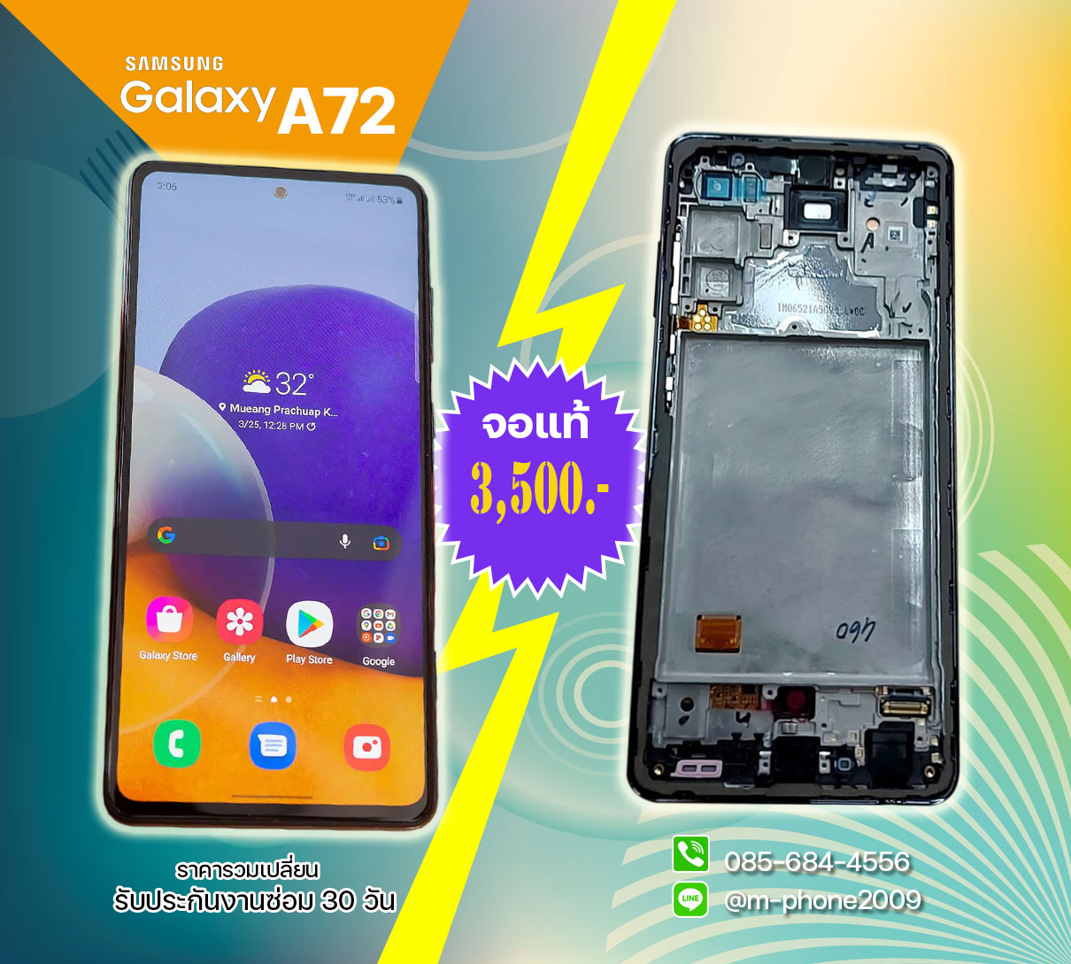 19 ก.ย. 2564 - งานเปลี่ยนจอพร้อมทัชสกรีน Samsung Galaxy A72 งานแท้ ราคา 3,500 บาท